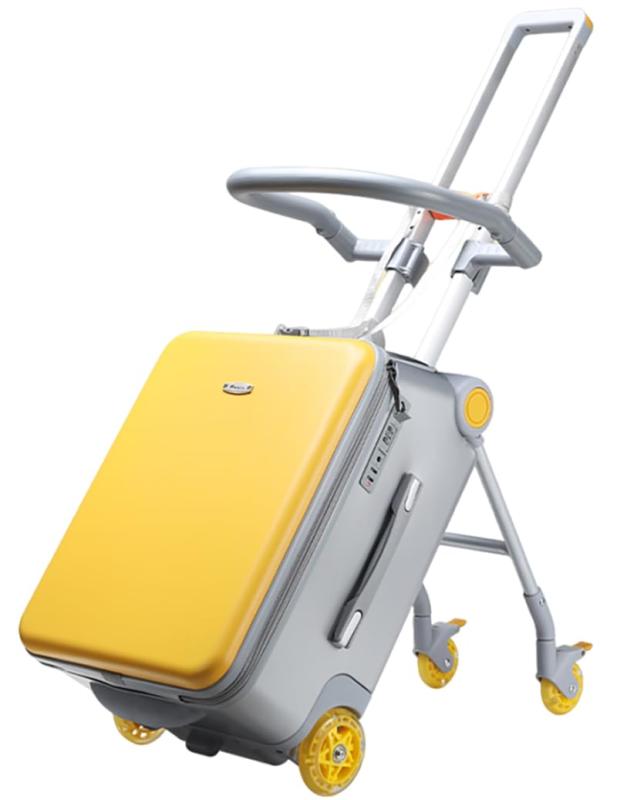 子供が乗れる軽量キャリーケース。機内持ち込み可能なサイズで、静音ダブルキャスター..